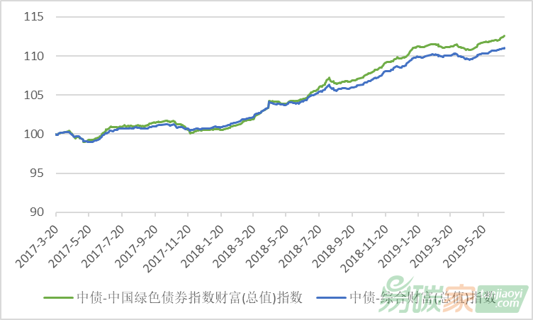 圖8 2017.3.20-2019.6.28中債-中國綠色債券指數(shù)財富(總值)指數(shù)、中債-綜合財富(總值)指數(shù)走勢對比圖數(shù)據(jù)來源:Wind、中央財經(jīng)大學(xué)綠色金融國際研究院