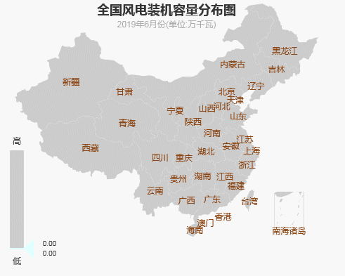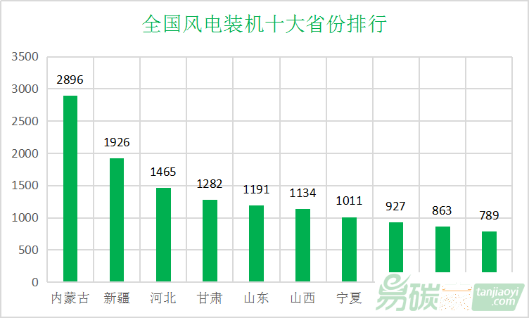 截止6月底,全國十大風電裝機省份分別是:內蒙古2896萬千瓦、新疆1926萬千瓦、河北1465萬千瓦、