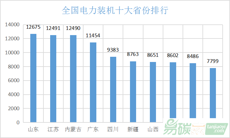 內蒙古12490萬千瓦、廣東11454萬千瓦、