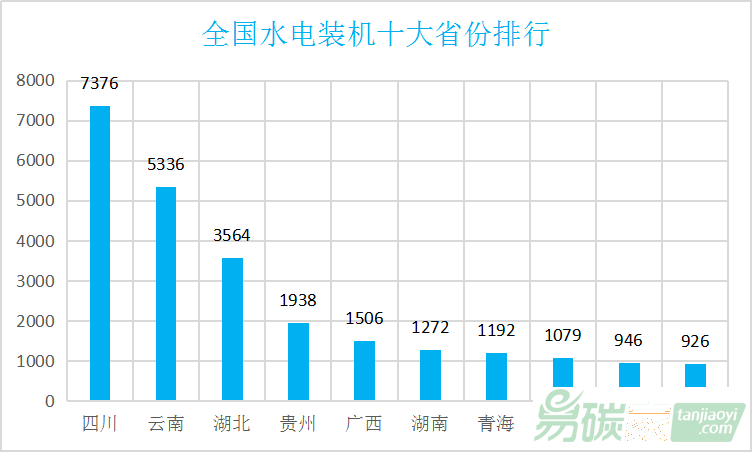 截止6月底,全國十大水電裝機省份分別是:四川7376萬千瓦、云南5336萬千瓦、湖北3564萬千瓦、