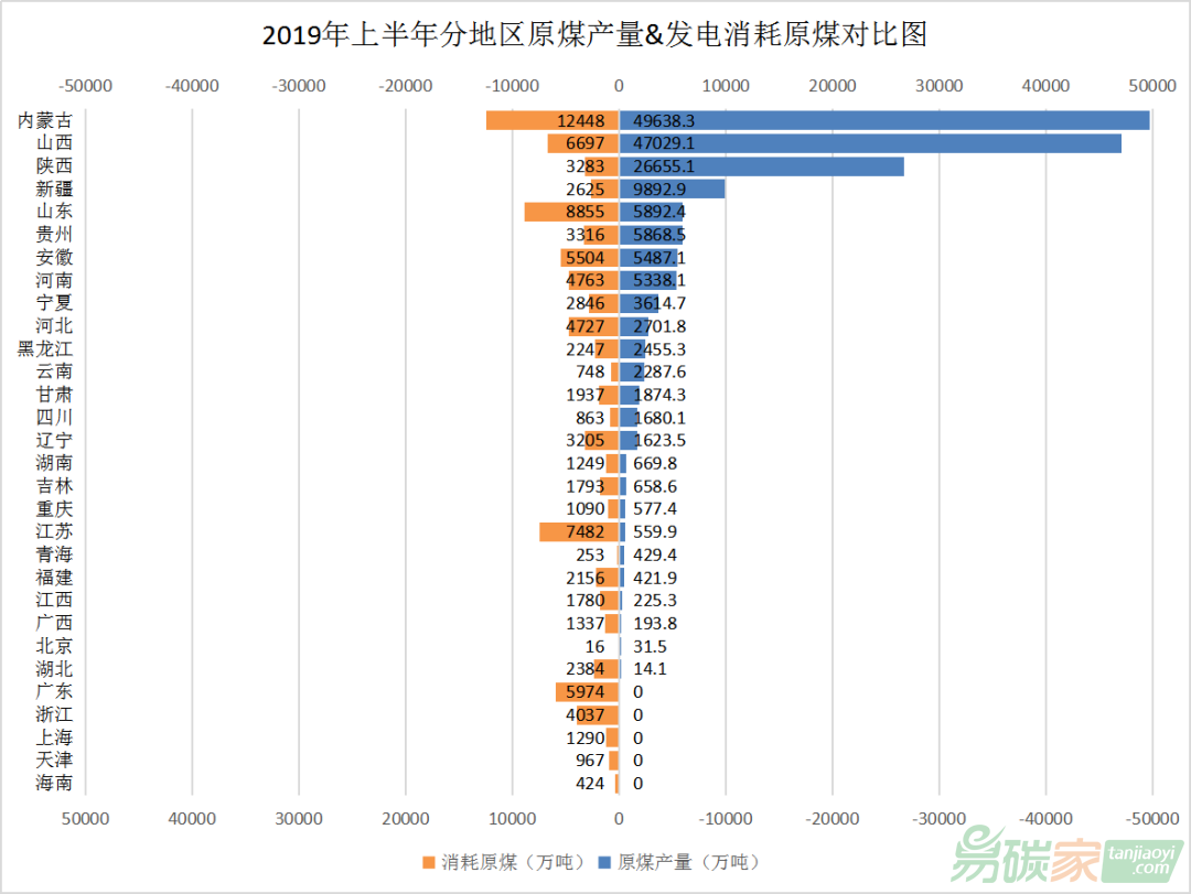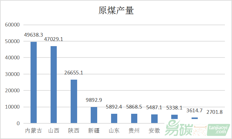 1-6月,我國原煤產(chǎn)量十大省份依次是:內蒙古(49638.3萬噸)、山西(47029.1萬噸)、陜西(26655.1萬噸)、新疆(9892.9萬噸)、山東(5892.4萬噸)、貴州(5868.5萬噸)、安徽(5487.1萬噸)、河南(5338.1萬噸)、寧夏(3614.7萬噸)和河北(2701.8萬噸)。