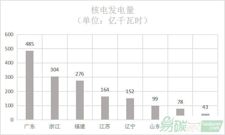 1-6月,全國進行核電發(fā)電八大省份的發(fā)電量分別是:廣東485億千瓦時、浙江304億千瓦時、福建276億千瓦時、江蘇164億千瓦時、遼寧152億千瓦時、山東99億千瓦時、廣西78千瓦時、海南43億千瓦時。