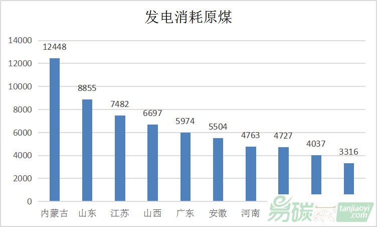 1-6月,我國6000千瓦及以上電廠發(fā)電消耗原煤十大省份依次是:內蒙古(12448萬噸)、山東(8855萬噸)、江蘇(7482萬噸)、山西(6697萬噸)、廣東(5974萬噸)、安徽(5504萬噸)、河南(4763萬噸)、河北(4727萬噸)、浙江(4037萬噸)和貴州(3316萬噸)。