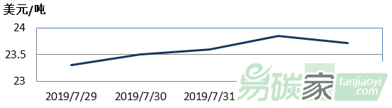 2019年07月29日至2019年08月02日,新西蘭碳市場價格在23.30-23.85美元/噸之間波動。