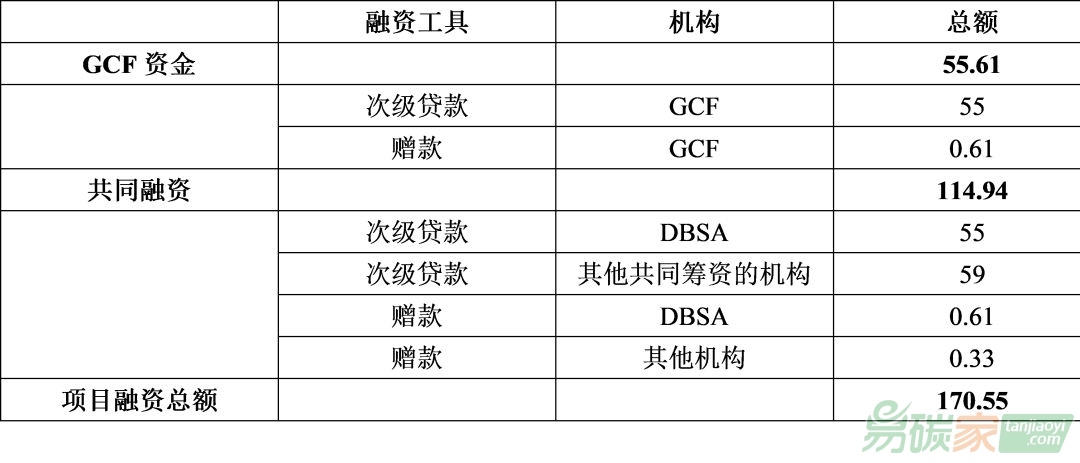 由DBSA實(shí)施的CFF項(xiàng)目將服務(wù)于非洲南部地區(qū),與私人資本合作,為低碳和氣候適應(yīng)性基礎(chǔ)設(shè)施項(xiàng)目提供資金,并促進(jìn)更多與氣候相關(guān)的投資。CFF將重點(diǎn)使用次級(jí)貸款、增信等金融工具,可延長貸款期限或提供其他類型的信貸支持,以支持商業(yè)上可行但在私營部門無法得到融資的項(xiàng)目。CFF的實(shí)施將降低風(fēng)險(xiǎn),增加氣候投資的可融資性,并吸引大量私營部門資本。本項(xiàng)目的資金來源如下表所示: