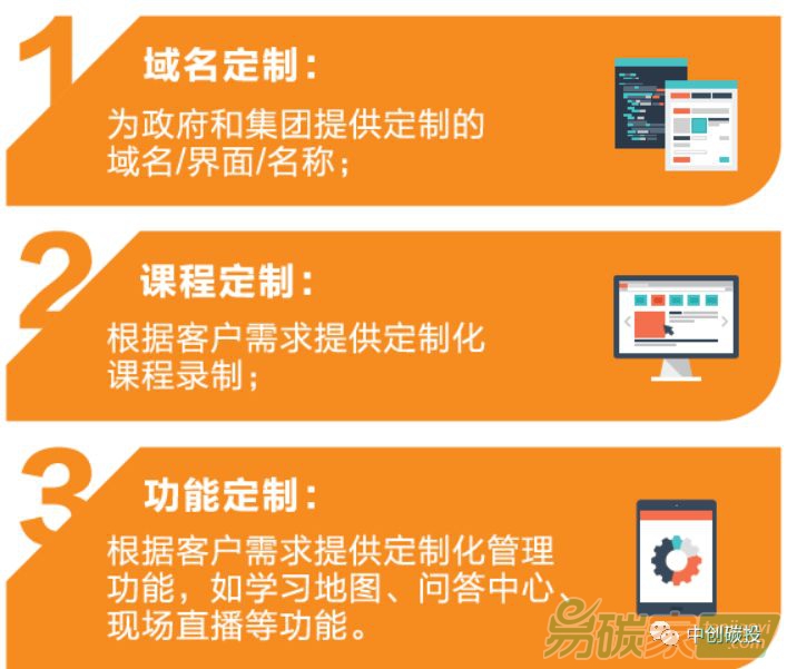 產(chǎn)品二:線上平臺(tái)我們緊跟互聯(lián)網(wǎng)時(shí)代潮流,在2017年正式推出在線教育服務(wù)產(chǎn)品,為企業(yè)及政府客戶量身打造專業(yè)化的一站式綜合培訓(xùn)解決方案。