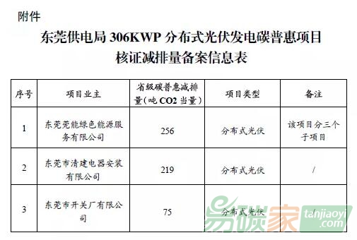 《關于申報東莞供電局306KWP 分布式光伏發(fā)電等5 個碳普惠項目為省級碳普惠核證減排量的函》(東環(huán)函〔2019〕2720 號)收悉。經(jīng)審核,東莞莞能綠色能源服務有限公司建設運營等5 個分布式光伏發(fā)電碳普惠項目符合《廣東省安裝分布式光伏發(fā)電系統(tǒng)碳普惠