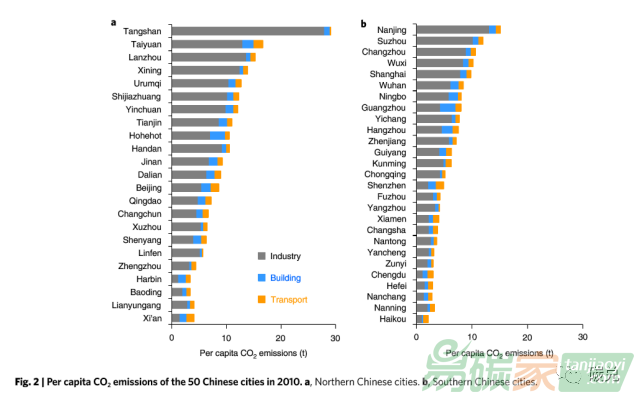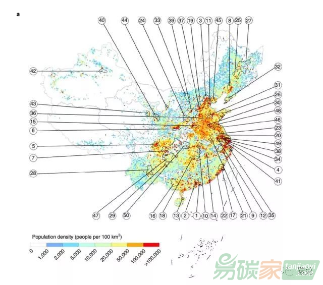 中國城市二氧化碳排放水平 來源:《自然·可持續(xù)性》