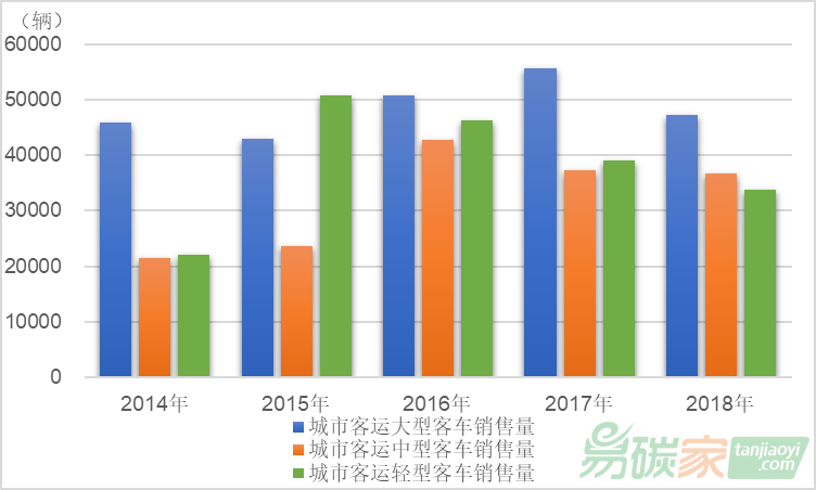 圖 3 2014-2018年各類型城市客運客車銷售量數(shù)據(jù)來源:Wind數(shù)據(jù)庫
