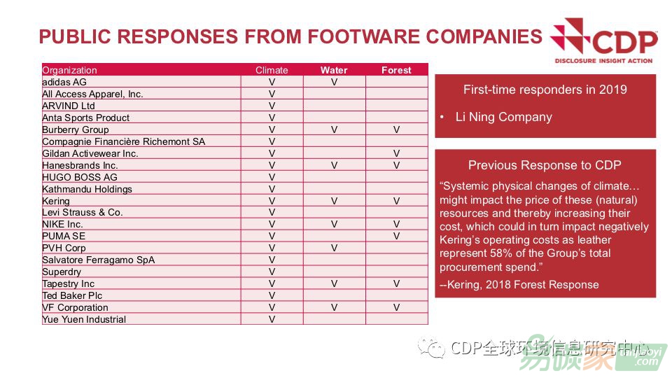 全球鞋業(yè)企業(yè)向CDP披露情況概覽
