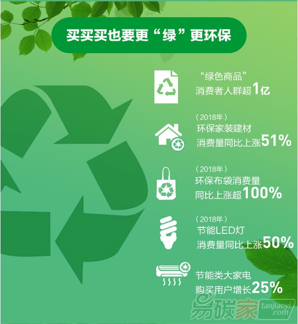 二是在綠色消費(fèi)領(lǐng)域,互聯(lián)網(wǎng)平臺(tái)提供了便捷的綠色商品消費(fèi)和閑置物品交易渠道,線上綠色消費(fèi)行為日益增多,正成為新的時(shí)尚潮流。同時(shí),公眾線上綠色消費(fèi)行為增加,能夠倒逼供給側(cè)環(huán)境行為改善。2018年,淘寶平臺(tái)的環(huán)保布袋成交量同比增長(zhǎng)超100%,環(huán)保家裝