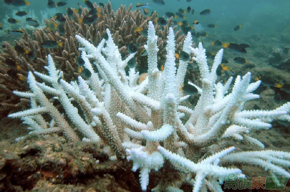 大規(guī)模的珊瑚白化是氣候變化引發(fā)的一個全球性問題。由于海洋熱浪持續(xù)時間越來越長,珊瑚不能承受長時間的高溫,開始死亡,珊瑚礁的多樣性因此逐漸減少。自2016年以來,大堡礁的一半珊瑚已經(jīng)被漂白致死。大堡礁的黯然失色說明了海水升溫破壞的范圍有多廣:2016年30%的珊瑚死亡,2017年為20%。沿礁北岸的大部分海洋生態(tài)系統(tǒng)變得貧瘠,幾乎沒有恢復(fù)的希望[10]。