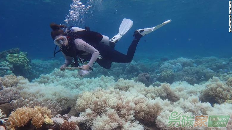 2017年3月,一名潛水員正在檢查大堡礁的珊瑚白化現(xiàn)象 | https://edition.cnn.com/2017/04/10/asia/great-barrier-reef-coral-bleaching/index.html
