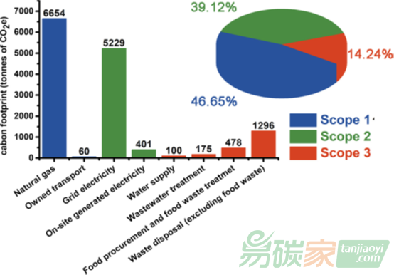 中央餐飲部采購的前40名食物中,有122.92t的二氧化碳排放量為484t,消耗了214046m3的水;34.18t的食物垃圾用于厭氧消化,回收了12.25MWh的能源,節(jié)省了5.54 tCO2e。(由于數(shù)據(jù)限制,食品生產(chǎn)的能源投入未統(tǒng)計)