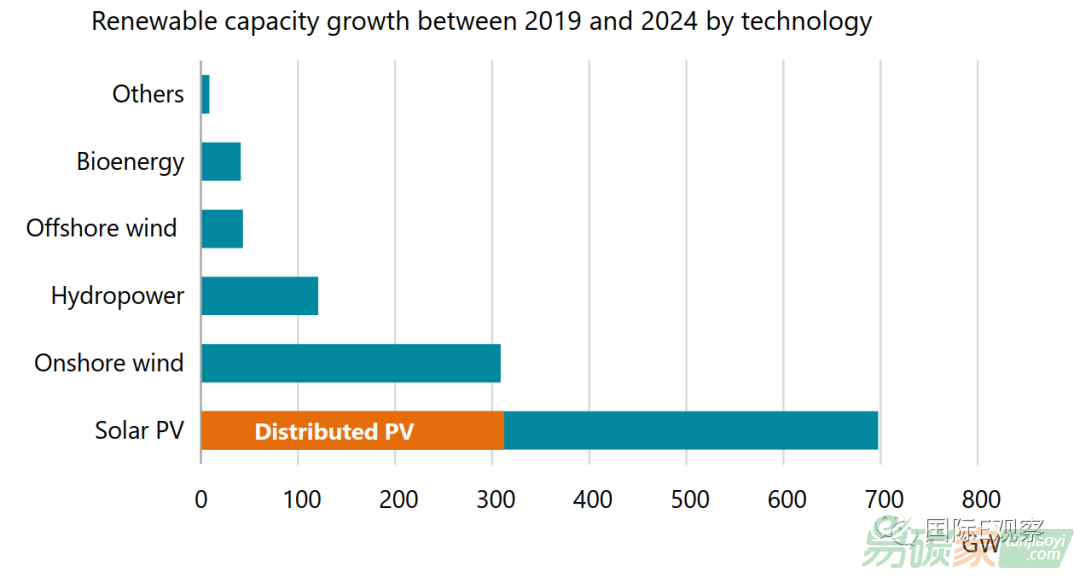 水泥等) 二、可再生能源總體發(fā)展 根據(jù)報(bào)告,可再生電力裝機(jī)有望在2019年至2024年裝機(jī)擴(kuò)張50%,那將意味著1200吉瓦裝機(jī),相當(dāng)于美國電力總裝機(jī)。僅太陽能光伏將占據(jù)可再生能源增長量的60%,陸地風(fēng)電將可能增長25%。