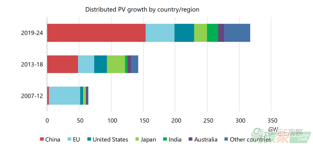 在光伏領(lǐng)域,中國將占全球分布式光伏增長的一半左右,超過歐盟成為世界光伏領(lǐng)域的領(lǐng)導(dǎo)者,至少在2021年前如此。然而,歐盟在分布式光伏擴(kuò)張方面仍然強(qiáng)勁,因?yàn)榧夹g(shù)進(jìn)步而使得光伏變得更加具有經(jīng)濟(jì)性,同時(shí)政策環(huán)境也改善了。與此同時(shí),日本仍然是一個(gè)非常強(qiáng)大的市場,印度、韓國也成為亞洲光伏增長的重要驅(qū)動(dòng)力。