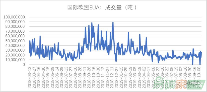 圖4:歐洲碳交易所EUA2018年-2019年10月成交量