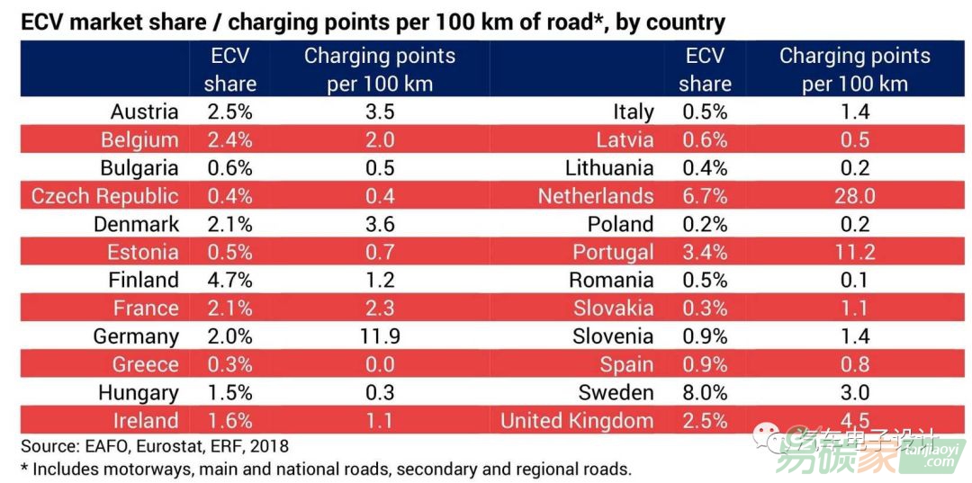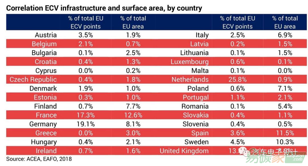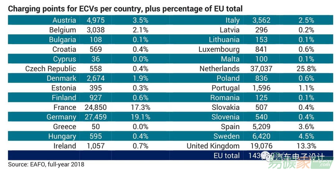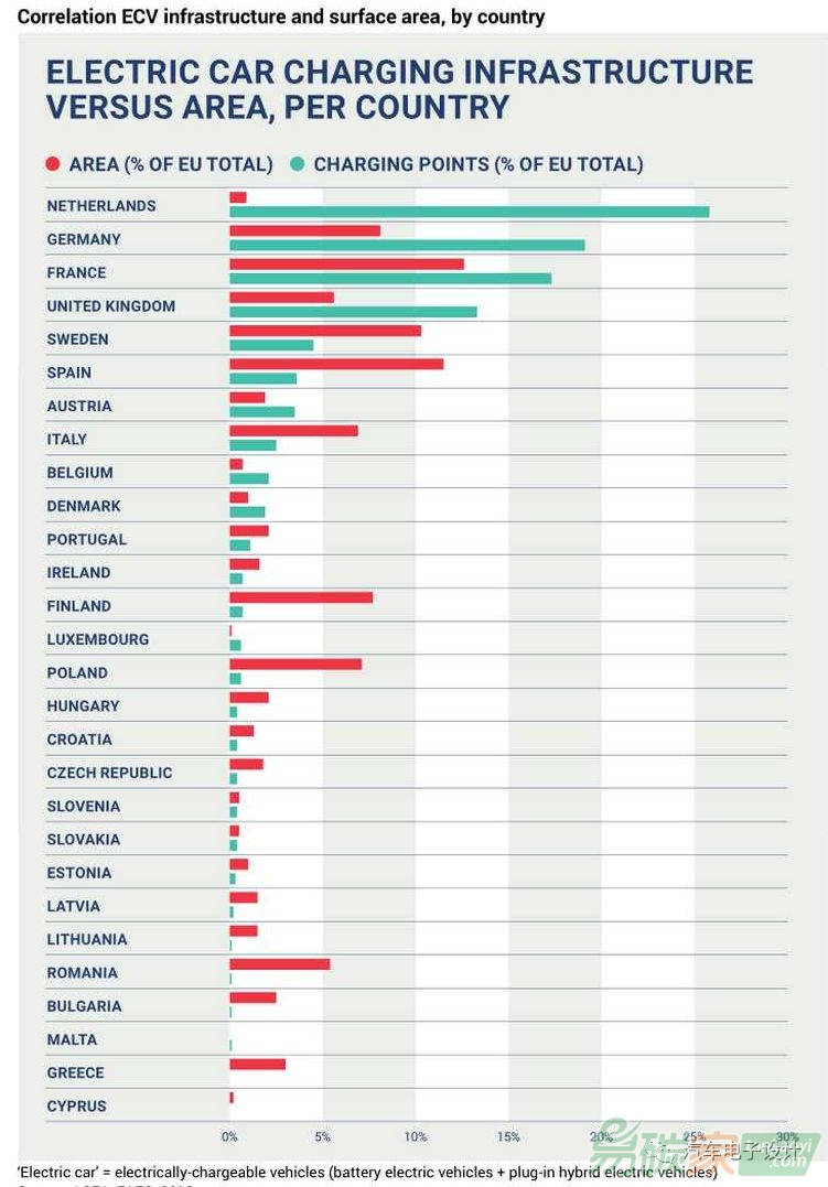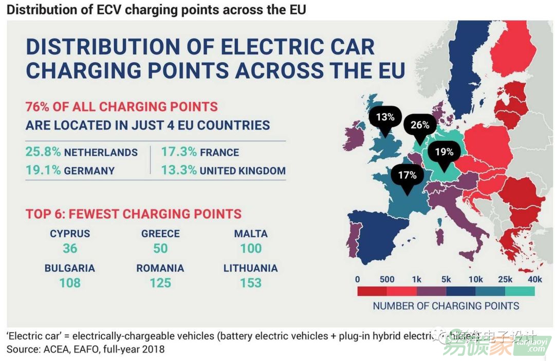 占歐盟總表面積27%的四個國家(荷蘭、德國、法國和英國)占歐盟所有充電設(shè)施的76%