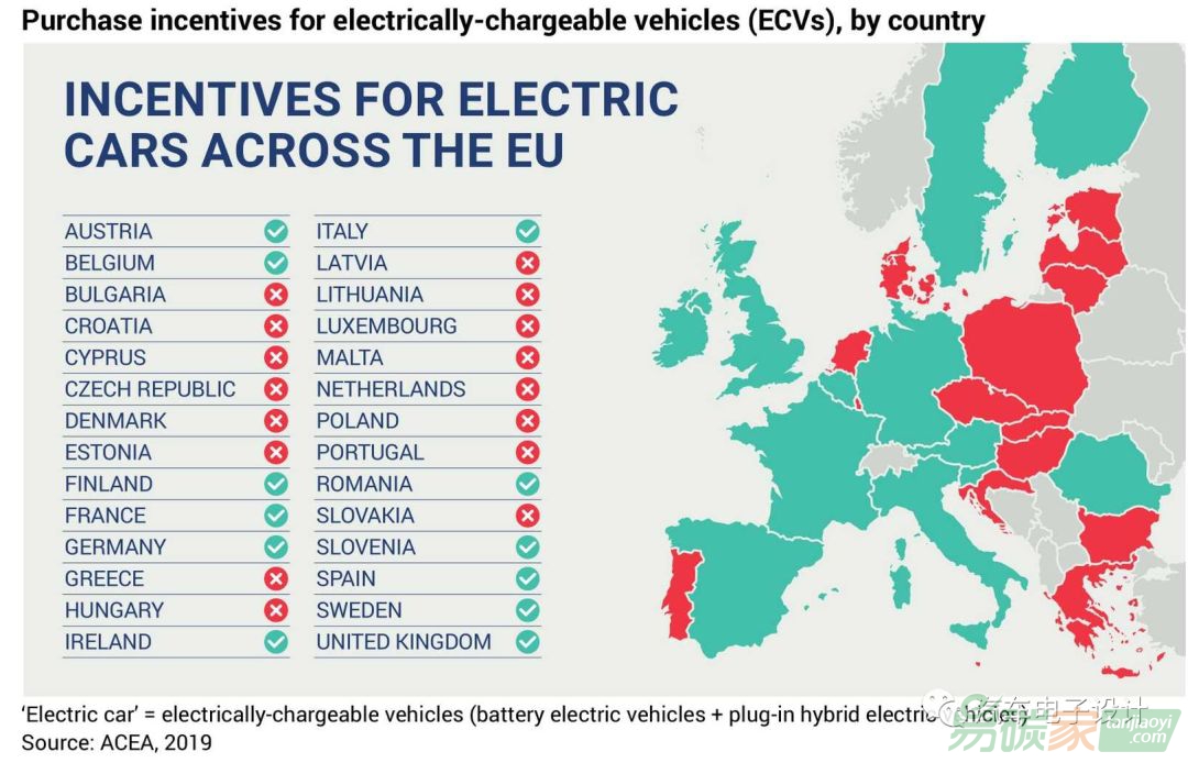 12個歐盟國家向電動汽車的購買者提供現(xiàn)金的激勵措施