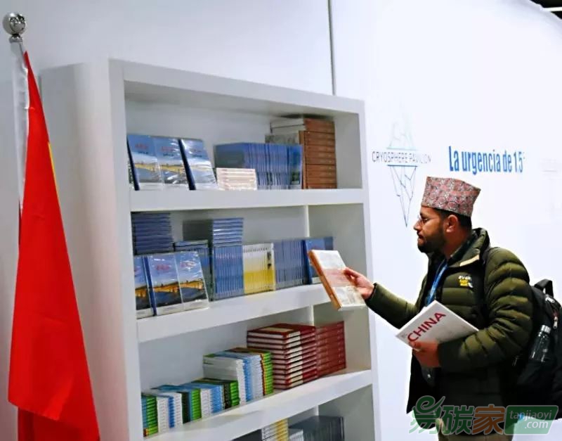 在2019年聯(lián)合國(guó)氣候大會(huì)期間,“中國(guó)角”專(zhuān)門(mén)設(shè)立了展示中國(guó)生態(tài)文明建設(shè)和應(yīng)對(duì)氣候變化所取得成效的圖書(shū)和影視片展覽區(qū),其中包括1820本中英版圖書(shū)和1950種中英西德俄法日阿等語(yǔ)種的影視片,供參會(huì)人員領(lǐng)取觀看。