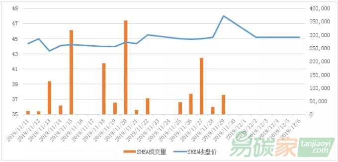 碳排放交易配額清繳截止期的結(jié)束,SHEA活躍度顯著下降,市場(chǎng)短期內(nèi)沒有剛性需求,觀望并等待明年相關(guān)