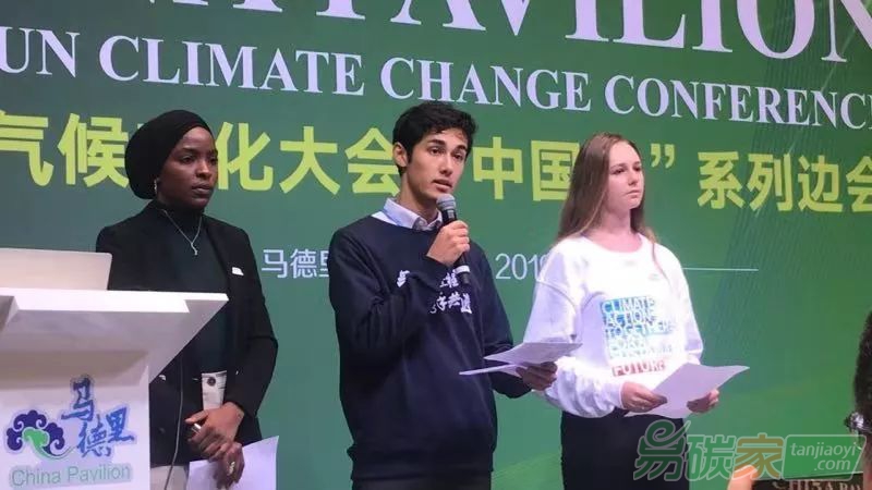 GAUC青年團(tuán)三位成員:清華大學(xué)政治經(jīng)濟(jì)學(xué)碩士柯卓爾、南非斯坦陵布什大學(xué)生物多樣性與生態(tài)學(xué)學(xué)士Jessie Yuill和帝國理工學(xué)院可持續(xù)能源未來博士Habiba Daggash共同宣讀了《氣候變化青年宣言》: