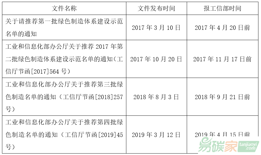 表1 工信部前四批關于推薦綠色制造體系建設示范名單的通知