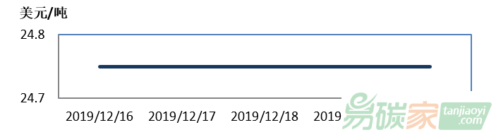 2019年12月16日至2019年12月20日,新西蘭碳市場價(jià)格為24.75美元/噸。