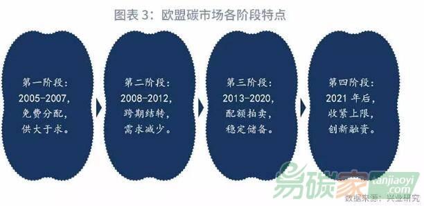 第一階段(2005年-2007年底),主要通過(guò)探索實(shí)踐、總結(jié)經(jīng)驗(yàn),配額分配以免費(fèi)分配為主。由于沒(méi)有歷史數(shù)據(jù)和缺乏分配經(jīng)驗(yàn),歐盟免費(fèi)分配的
