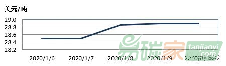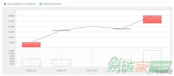 2020年01月06日至2020年01月10日,韓國碳價在33000-38000韓元/噸(約28.5-32.8美元/噸)之間波動。