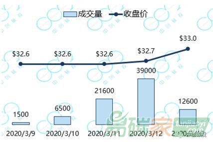 2020年03月09日至2020年03月13日,韓國(guó)碳價(jià)從32.6美元上漲至33.0美元每噸,上漲1.3%。