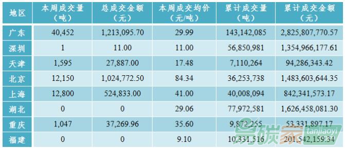 碳市場(chǎng)活躍度有所下降,共成交配額6.80萬(wàn)噸,較上周下跌66.24%,總成交金額為282.79萬(wàn)元,較上周下跌61.50%。廣東碳市場(chǎng)本周成交配額4.05萬(wàn)噸,成交均價(jià)29.99元/噸,較上周下跌0.03%;