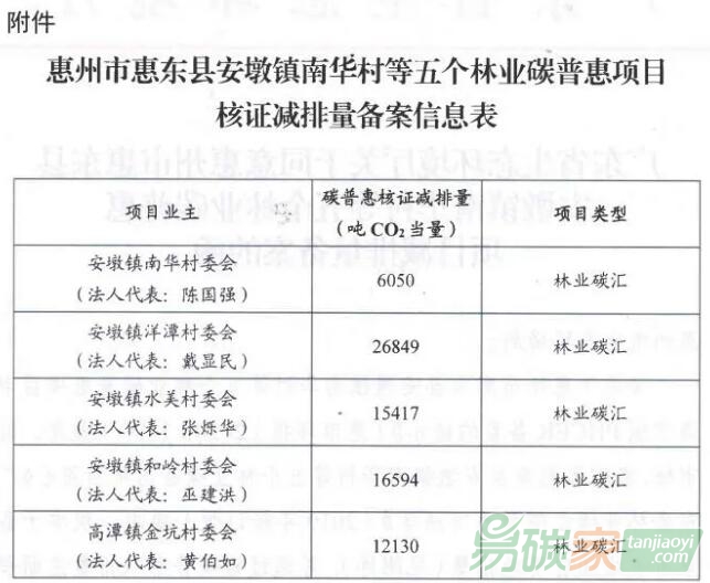 《關(guān)于惠州市惠東縣安墩鎮(zhèn)南華村等五個(gè)林業(yè)碳普惠項(xiàng)目申請(qǐng)省級(jí)PHCER備案的請(qǐng)示》(惠市環(huán)報(bào)〔2020〕11號(hào))收悉。經(jīng)審核,惠州市惠東縣安墩鎮(zhèn)南華村等五個(gè)林業(yè)碳普惠項(xiàng)目符合《廣東省林業(yè)