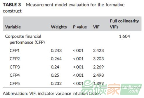 作者使用WarpPLS版本6.0應用偏最小二乘結(jié)構(gòu)方程模型(PLS-SEM),包括兩個評估步驟:測量模型評估和結(jié)構(gòu)模型評估。選擇PLS-SEM時考慮了幾個標準:(a)研究是否以預測為導向(b)數(shù)據(jù)特征是否呈正態(tài)分布(c)研究模型是否涉及形成性和反射性結(jié)構(gòu)。在本研究中,目標本質(zhì)上是預測性的,試圖找出顯著影響CFP的關(guān)鍵GPs,以及企業(yè)規(guī)模對GPs與CFP關(guān)系的影響。第二,進行了兩次正態(tài)性檢驗:Jarque-Bera正態(tài)性檢驗,結(jié)果顯示多個變量不正常;Shapiro-Wilk檢驗(P>0.05)顯示數(shù)據(jù)顯著性為0.000,表明數(shù)據(jù)不正常。第三,壓力研究的結(jié)構(gòu)模式包括反思性結(jié)構(gòu)和形成性結(jié)構(gòu)。這些證明了PLS-SEM的正確使用。