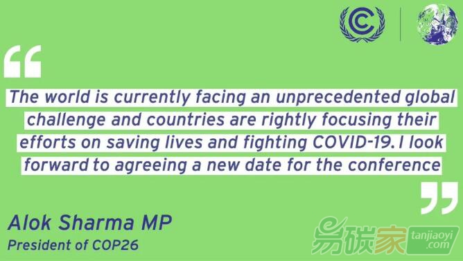 原定今年11月9日至20日在英國格拉斯哥舉行的聯(lián)合國氣候峰會(huì)已經(jīng)決定推遲到2021年,COP26候任主席Alok Sharma在聲明中表示,“全球當(dāng)前正面臨前所未有的挑戰(zhàn),各國正在致力于拯救生命和與新冠疫情作戰(zhàn),這就是為什么我們決定重新安排COP26的原因?!?/div>