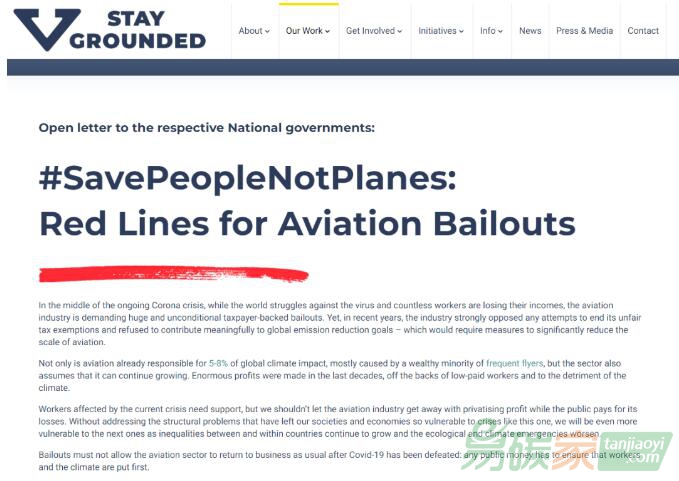 針對這些要求, 全球250多個工會和環(huán)保團(tuán)體以StayGrounded的名義發(fā)表公開信,要求各國政府采取的任何救助措施都將改善勞動條件,減少