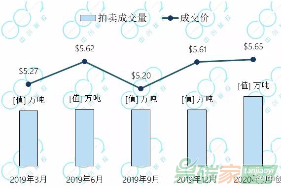 2020年2月,加州-魁北克碳市場(chǎng)舉行了本年第一次拍賣,拍賣配額現(xiàn)貨5709萬噸全部成交,成交價(jià)17.87美元每噸;拍賣2023年生效的配額867萬噸全部成交,成交價(jià)18.00美元每噸。成交均價(jià)較去年同期上漲14%。