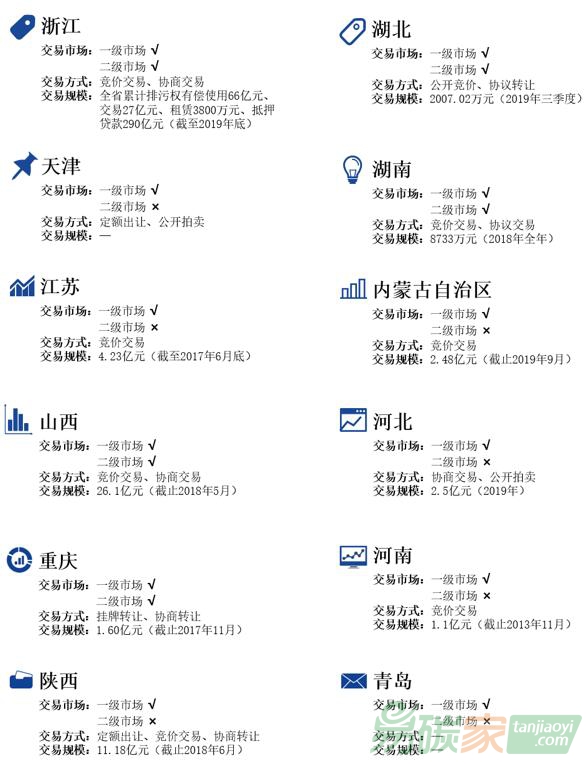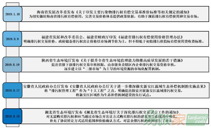 2019年,排污權(quán)交易市場(chǎng)的整體建設(shè)進(jìn)展緩慢,但仍有一些地方省市做出了努力和推進(jìn)了工作,如下圖所示: