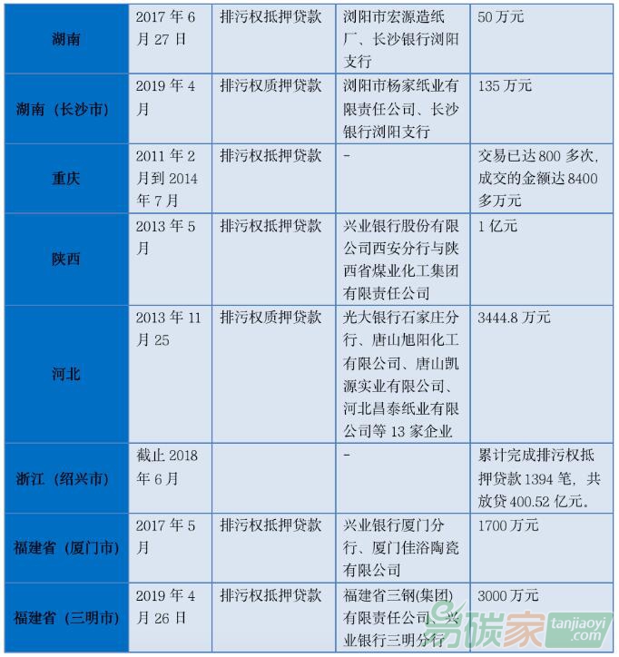 我國(guó)較早就開始探索基于排污權(quán)的融資工具,浙江省在2010年就出臺(tái)了排污權(quán)抵押暫行規(guī)定,開始排污權(quán)抵押貸款相關(guān)工作。目前12個(gè)政府批復(fù)的試點(diǎn)省市多數(shù)都允許進(jìn)行抵押和質(zhì)押貸款、租賃、回購(gòu)等融資方式。