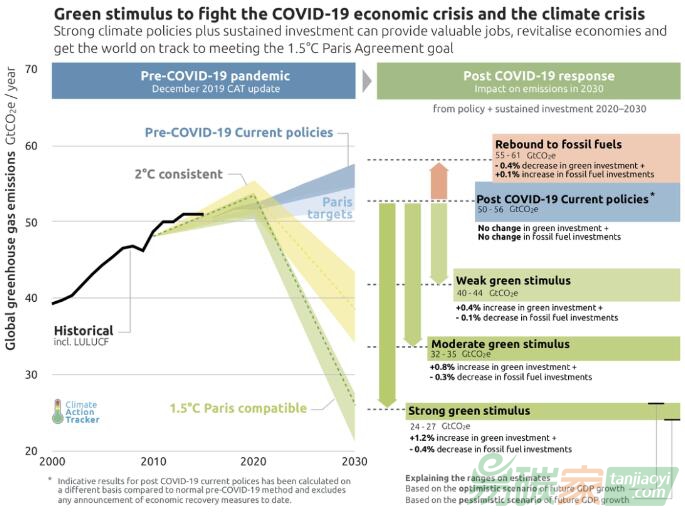 碳排放量下降4%至11%,并可能在2021年再次下降1%,相比2019年碳排放下降9%。氣候行動(dòng)追蹤C(jī)limateActionTracker(CAT)機(jī)構(gòu)發(fā)表報(bào)告,為疫情之后各國(guó)政府的氣候