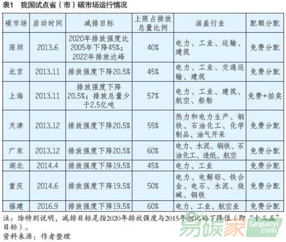 福建省為貫徹落實(shí)《國(guó)家生態(tài)文明試驗(yàn)區(qū)(福建)實(shí)施方案》,加入碳交易試點(diǎn)。目前,8 個(gè)試點(diǎn)地區(qū)覆蓋了