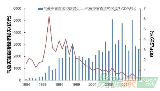 中國是一個受全球氣候變化影響嚴重的國家之一。根據(jù)國家氣候中心每年發(fā)布的災害公報顯示,目前中國遭受的氣象災害直接經(jīng)濟損失一直高居不下(如圖)。