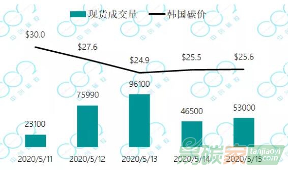 2020年5月11日至2020年5月15日,韓國碳價(jià)從30美元大幅下跌至25.6美元每噸,一周之內(nèi)跌幅達(dá)15%。環(huán)境部周四表示,在