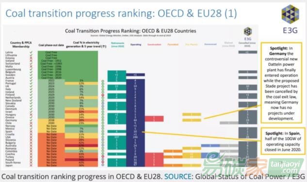 根據(jù)非政府組織E3G匯總的數(shù)據(jù),在經(jīng)合組織和歐盟國(guó)家中,以下10個(gè)國(guó)家已經(jīng)沒有煤電: