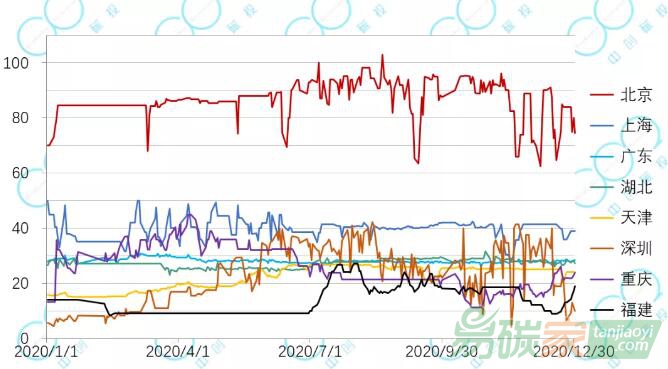 深圳碳市場2020年不同品種配額價格出現(xiàn)較大差異;