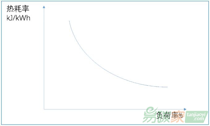 火電機組的熱耗率隨負荷率的升高而降低:
