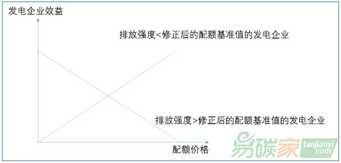 碳配額缺口。發(fā)電企業(yè)配額交易度電收益和排放強度的關(guān)系如下圖: