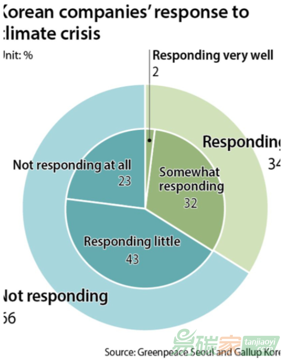 民調(diào)顯示出了同樣的結(jié)果:有66%的韓國(guó)民眾認(rèn)為韓國(guó)大企業(yè)沒有正確應(yīng)對(duì)氣候危機(jī),其中23%的人認(rèn)為韓國(guó)大企業(yè)完全沒有任何行動(dòng)。同期針對(duì)來自五個(gè)國(guó)家的相關(guān)領(lǐng)域一百位專家的調(diào)查則顯示,高達(dá)87%的受訪專家認(rèn)為韓國(guó)應(yīng)立即擴(kuò)大可再生能源的使用。