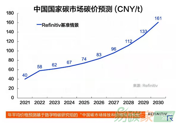 國家碳市場碳價(jià)預(yù)測 數(shù)據(jù)來源:路孚特點(diǎn)碳自有模型