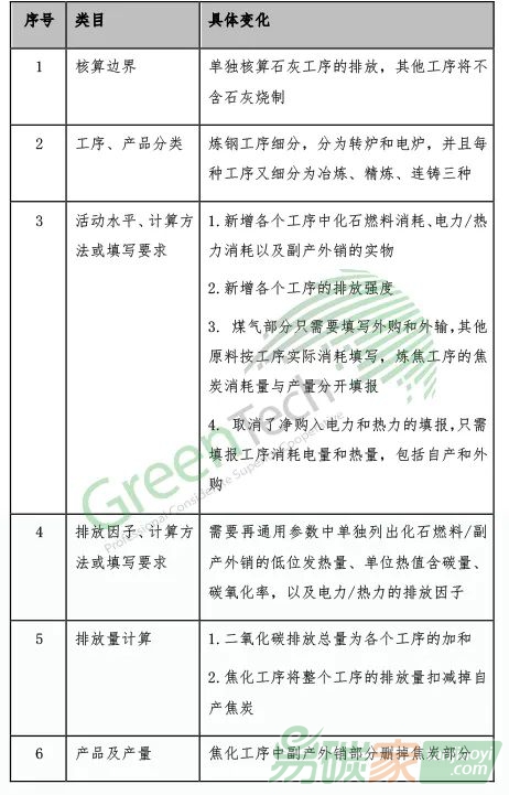 鋼鐵行業(yè)總體上對排放源、工序及產(chǎn)品進行了更細的劃分,數(shù)據(jù)方面強調(diào)了排放強度的計算,對于煤氣的消耗改為考慮全廠邊界下的外購和外銷。